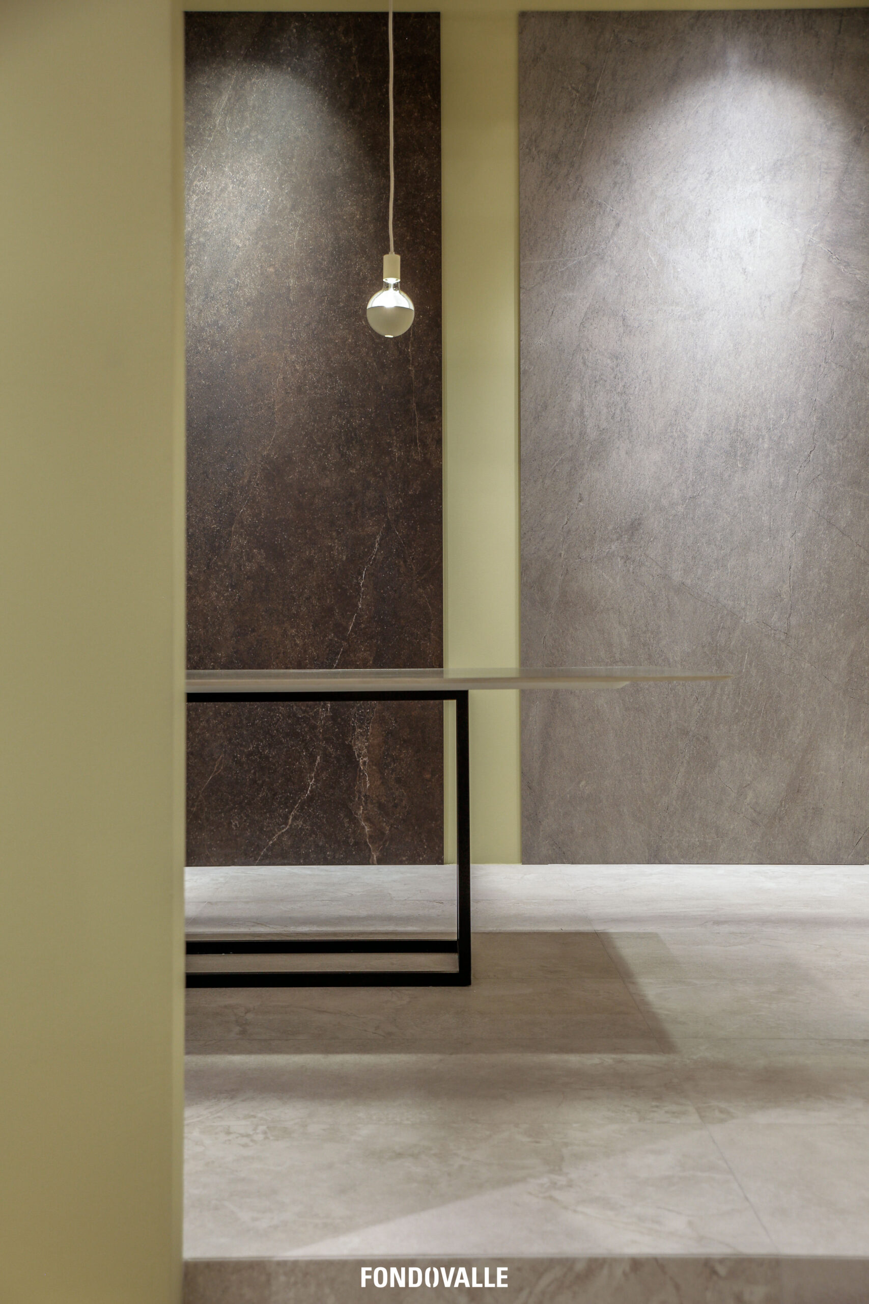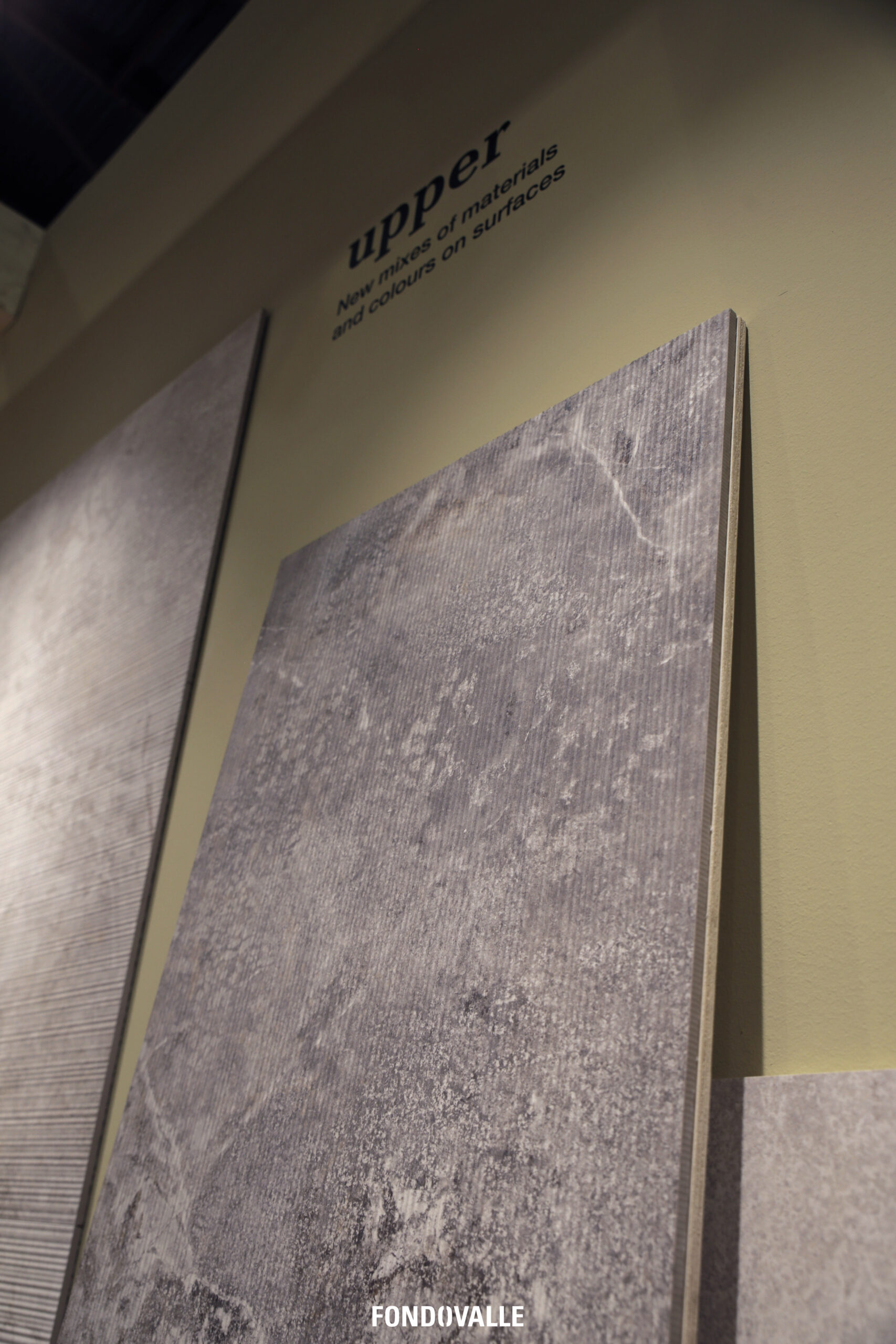 The new Upper series is presented in four tones, produced with the exclusive Matt&Deep production technology applied in the mixtures that compose the Fondovalle porcelain stoneware: a technological solution that makes the surface extremely opaque, at the same time enhancing the three-dimensional appearance of the graphics and structures.