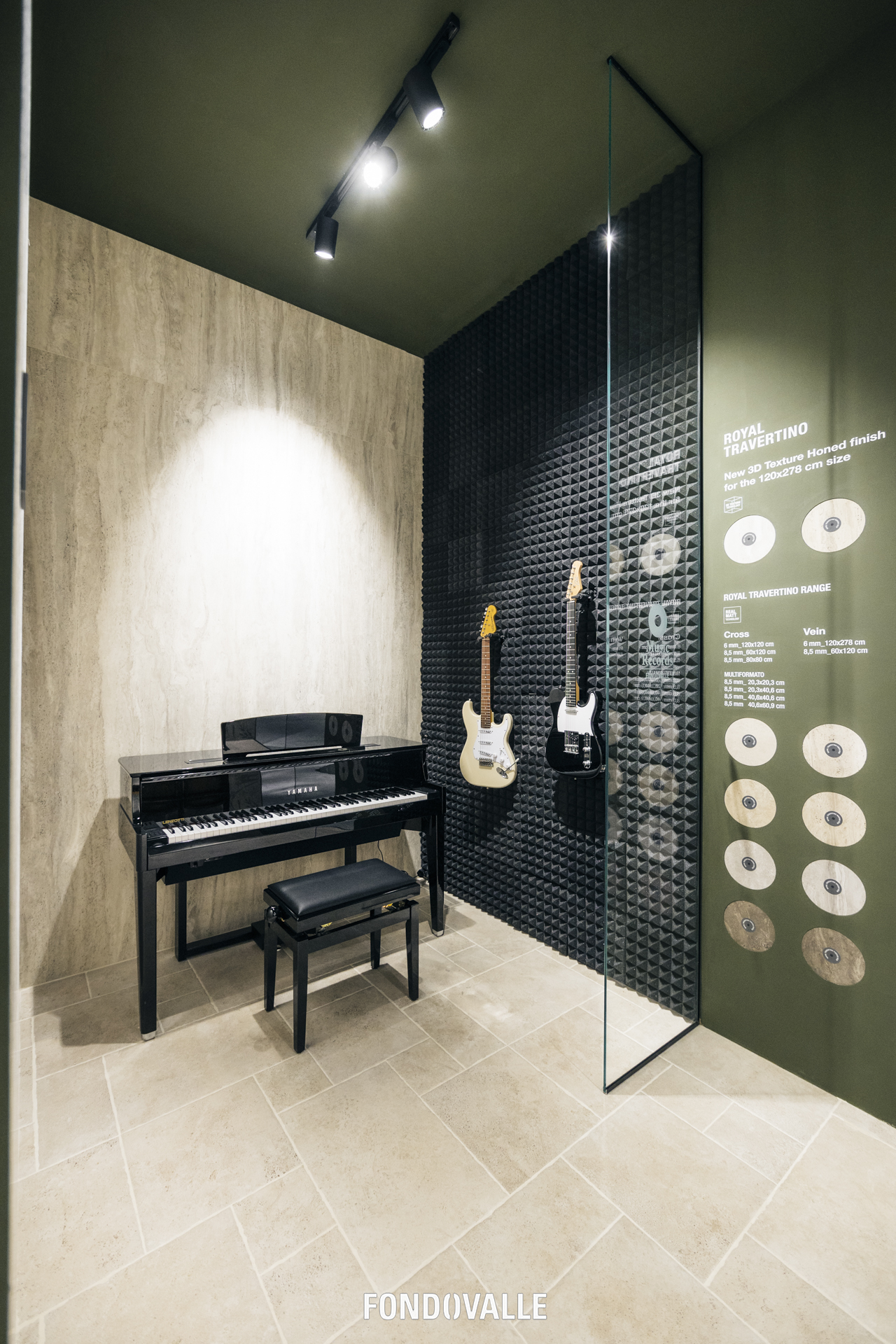 The Dream collection, which now includes new nature-inspired accents and 60×120 cm tiles, has also been enhanced with Precious technology, used in the Palm line to lend surfaces a golden sheen. The Royal Travertino collection, meanwhile, now offers the exclusive 3D Texture Honed finish for the Ebur Vein and Navona Vein options, which creates a high-impact three-dimensional, soft-to-the-touch finish.