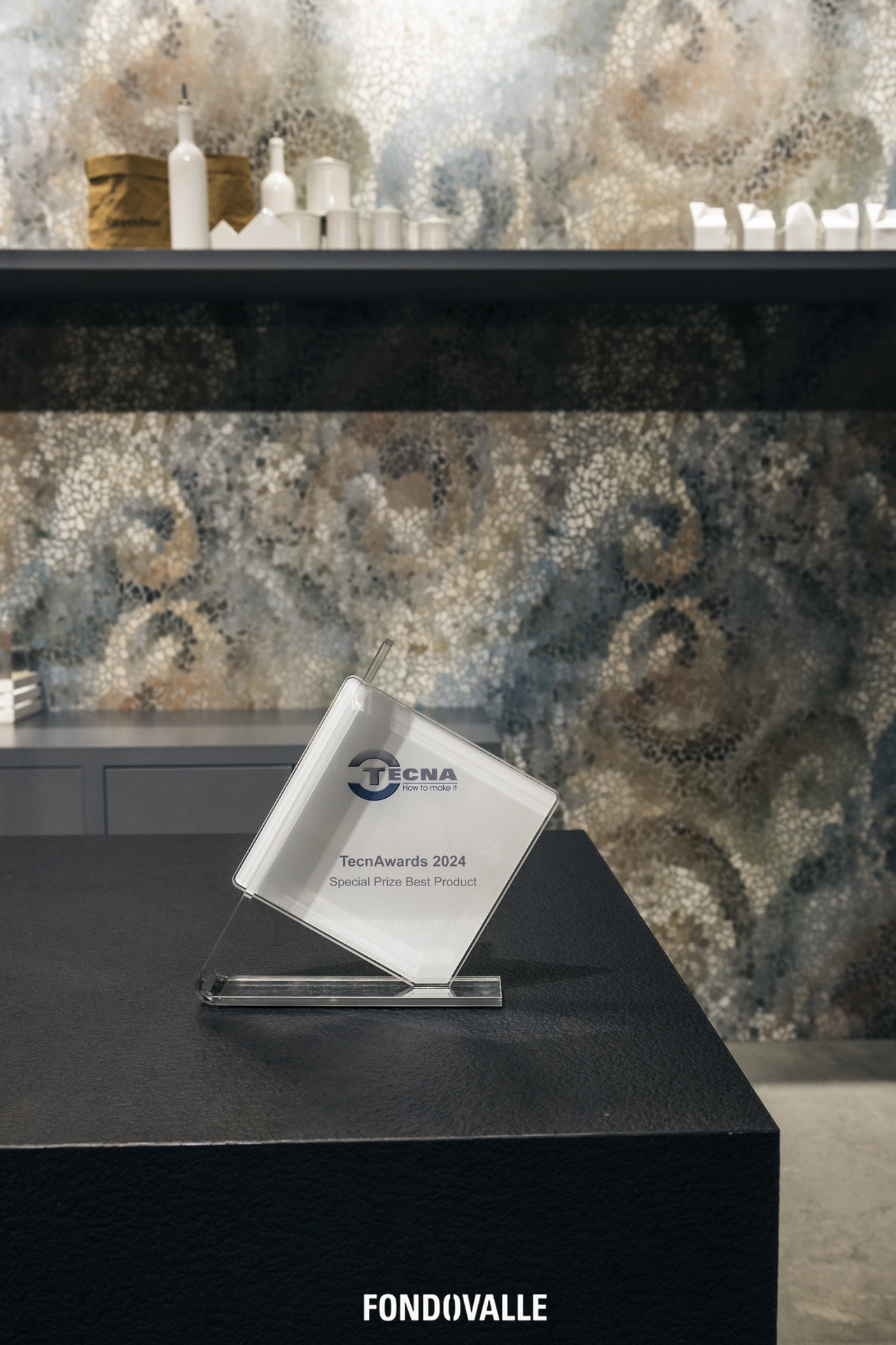Continuous innovations in research and development by Ceramica Fondovalle has led to exceptional achievements and the company receiving the TecnAwards special prize for the MyTop Stone Lab Nero Zimbabwe 3D Texture at the Tecna 2024 fair, and the prestigious ADI Booth Award at Cersaie 2024 for the exhibition stand. Double recognition that Fondovalle is happy to share, on behalf of the entire company, with its associates and customers, demonstrating the company’s constant commitment to excellence.