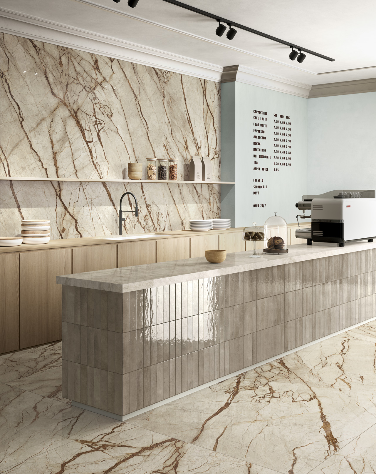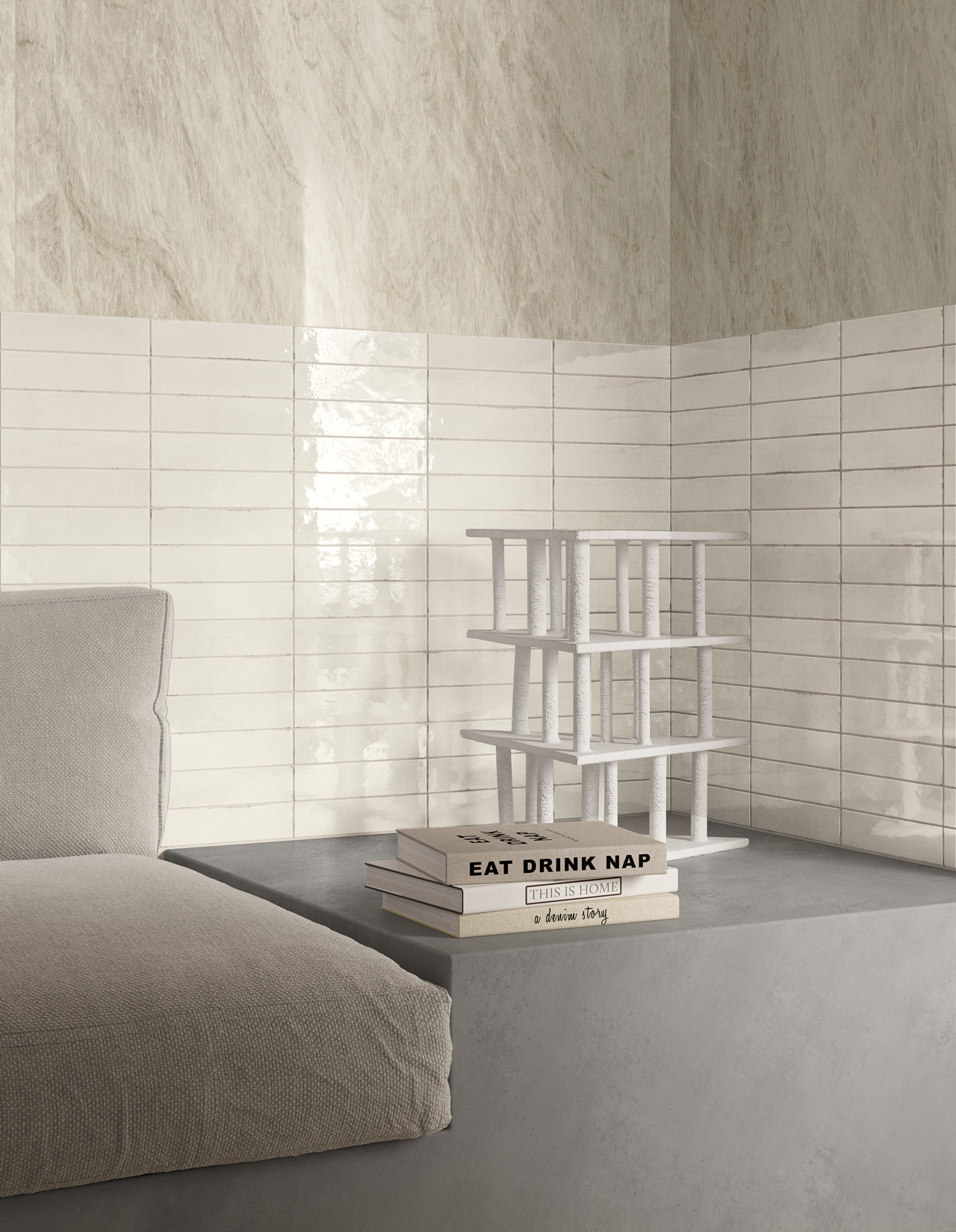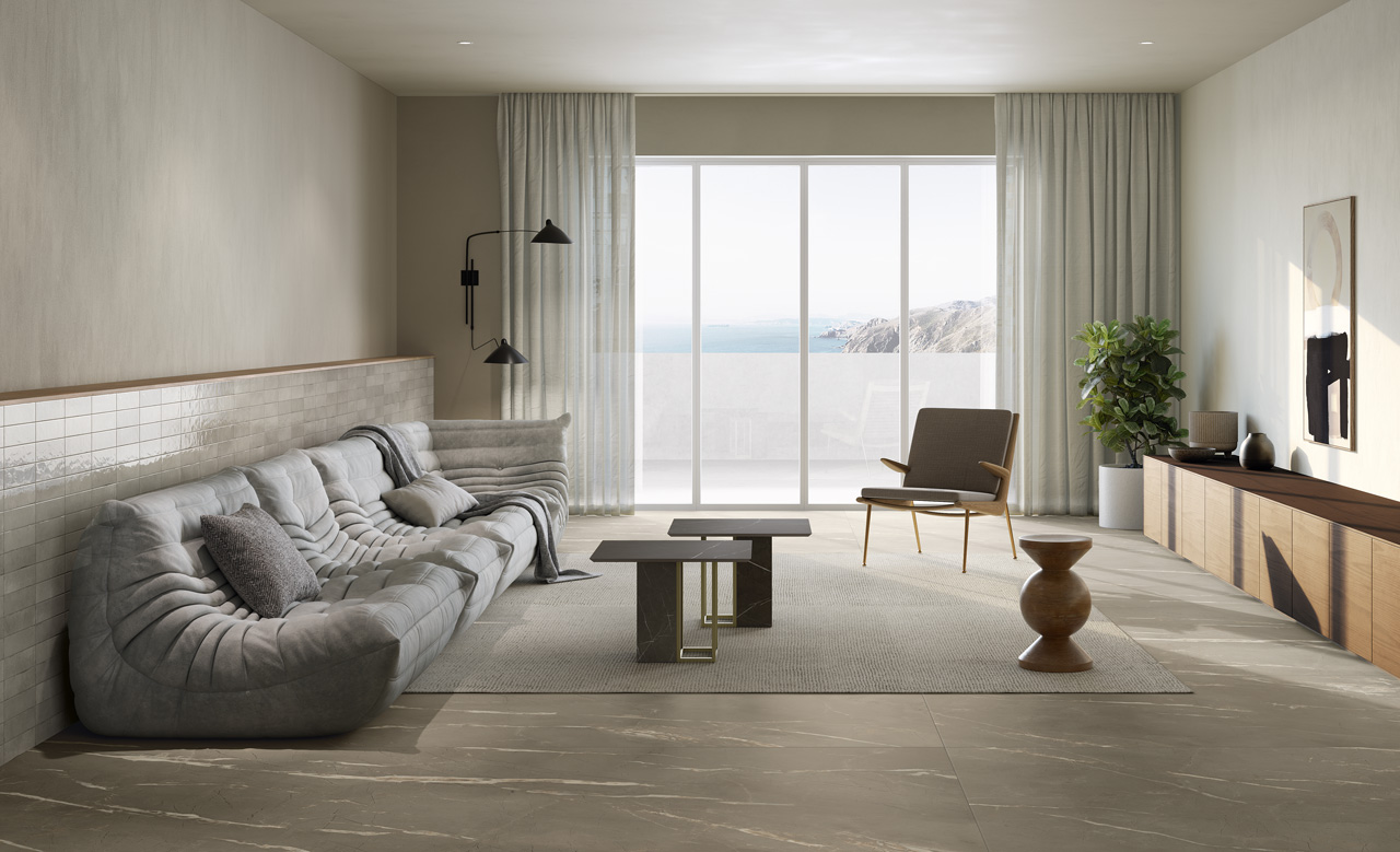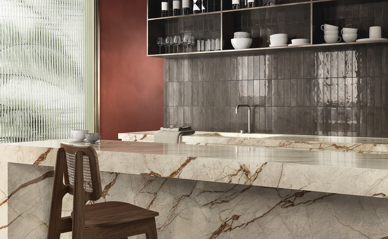 A striking, tactile aesthetic steeped in the history of ceramic tiles