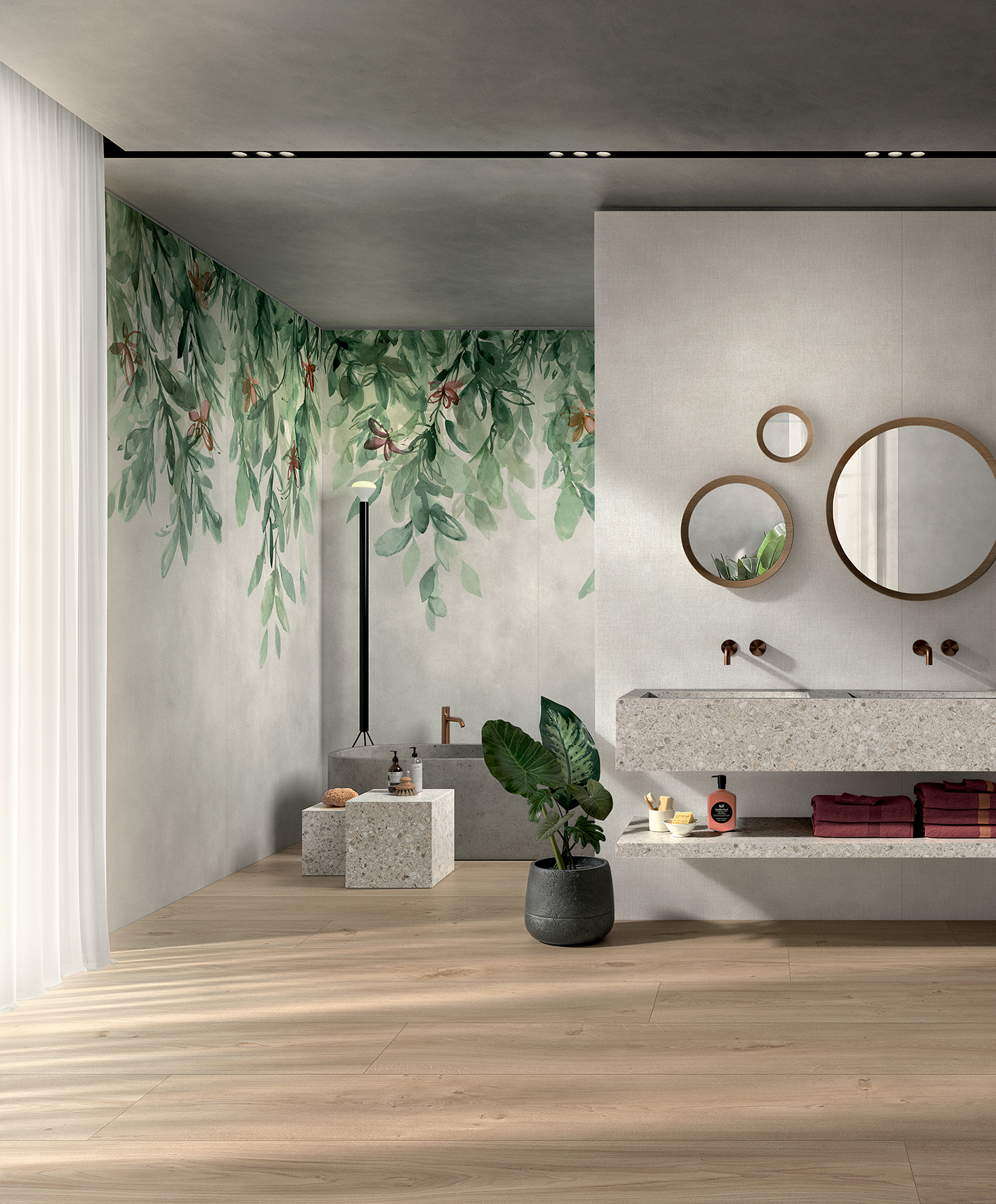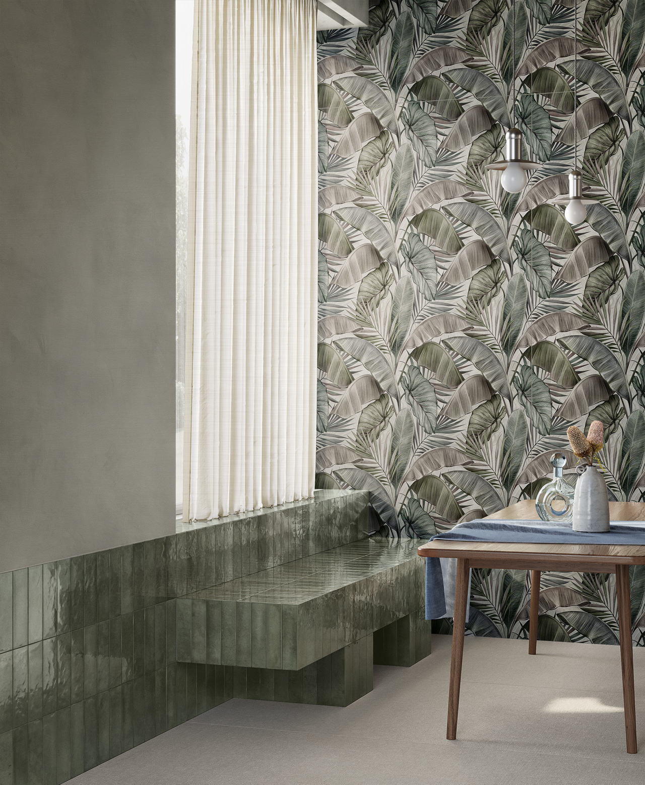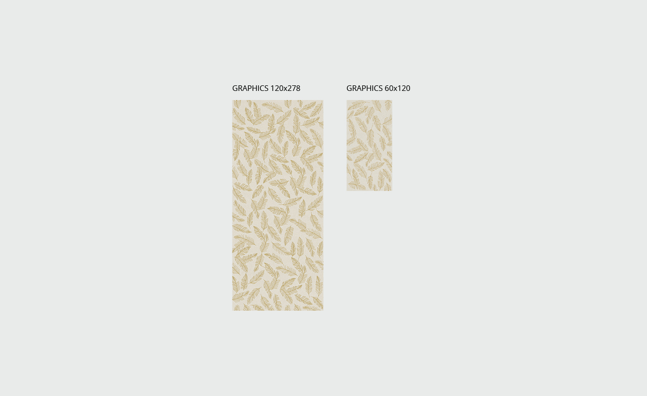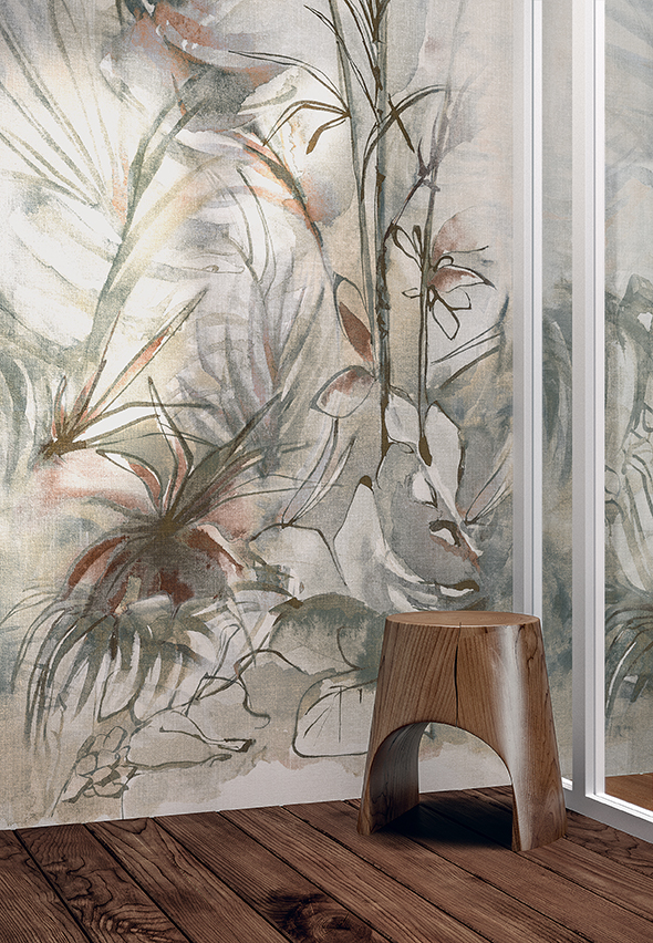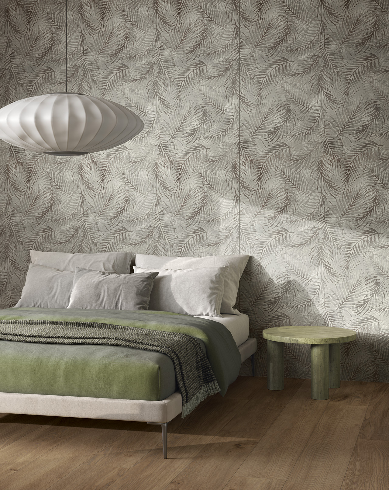 Luminescent material applications with a rich, tactile thickness accentuate the depth of variegated decorations, transforming ceramic surfaces into refined textures with glints of gold. Thanks to the Precious technology, Palm decorations acquire a deep reflectance, with colors and textures becoming more vivid and bright. The raised golden effects elegantly enhance every detail.