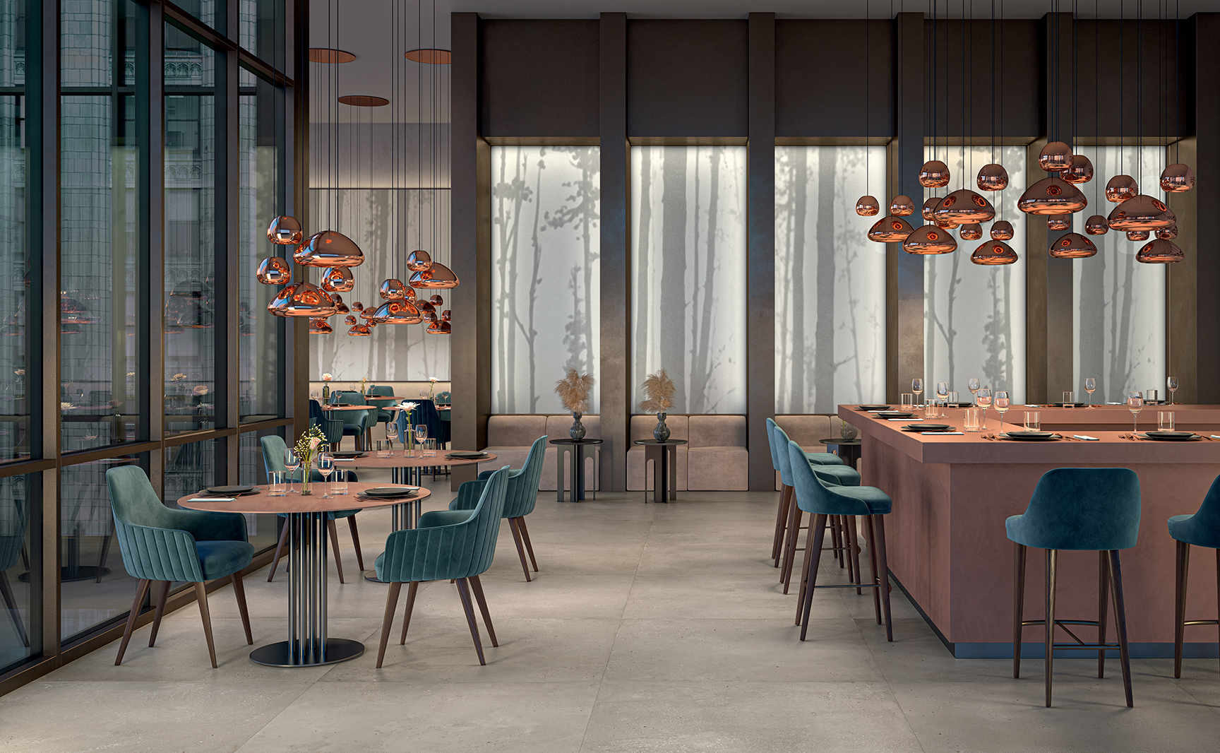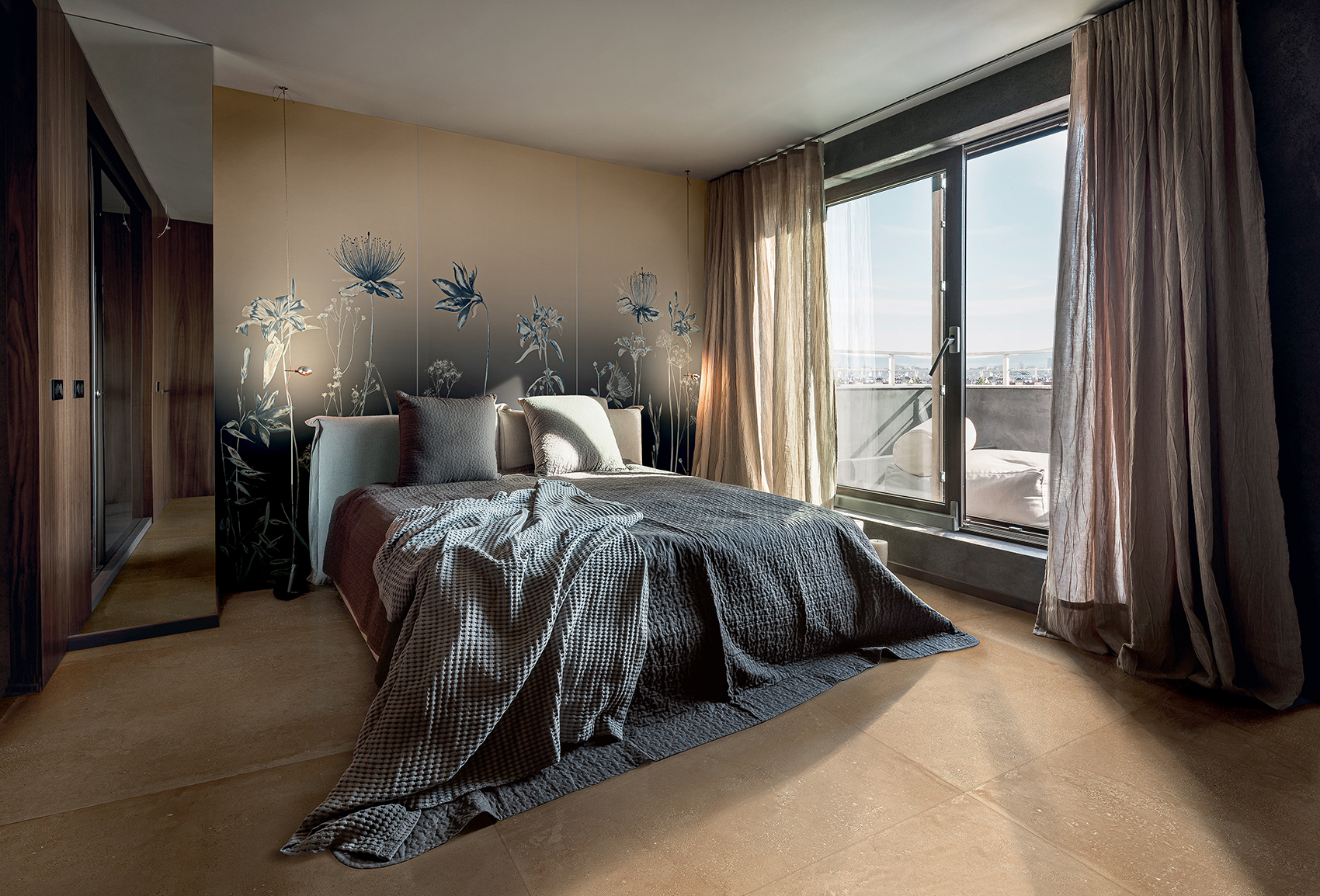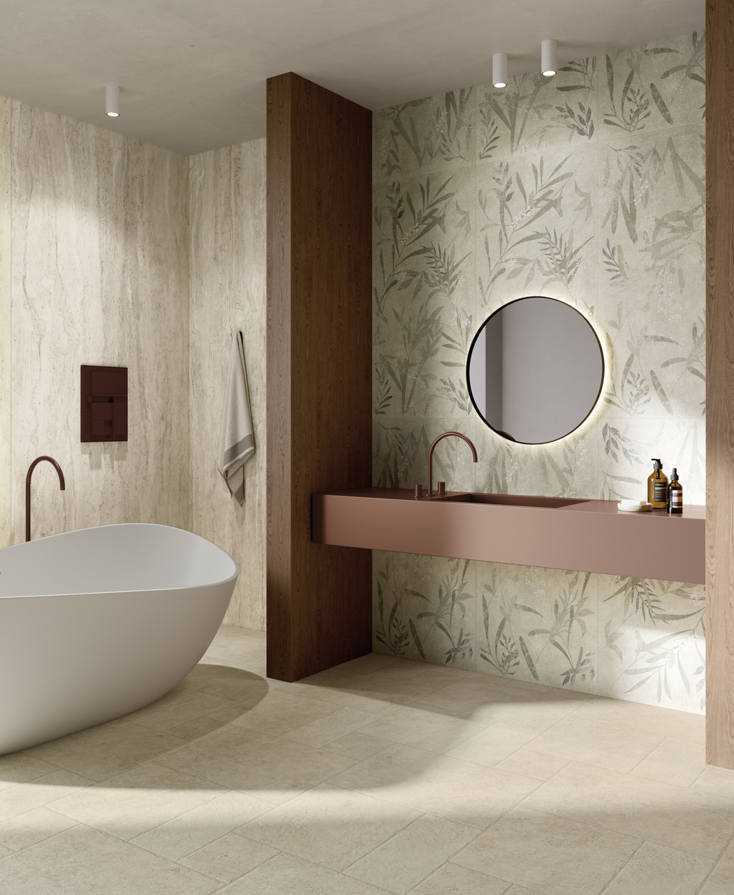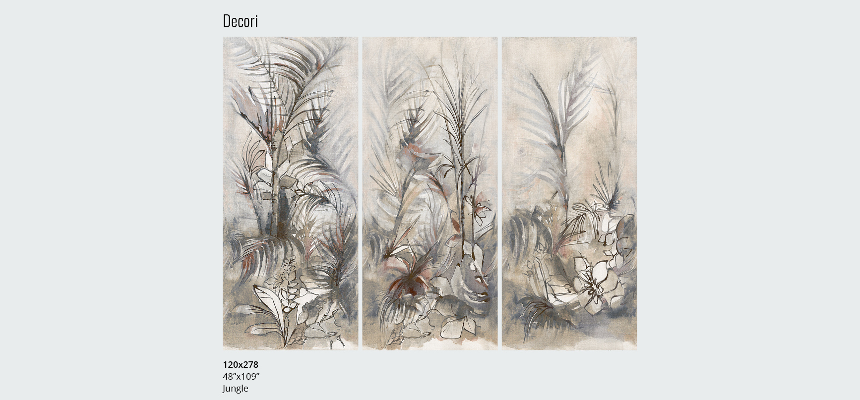 Luminescent material applications with a rich, tactile thickness accentuate the depth of variegated decorations, transforming ceramic surfaces into refined textures with glints of gold. Thanks to the Precious technology, Palm decorations acquire a deep reflectance, with colors and textures becoming more vivid and bright. The raised golden effects elegantly enhance every detail.
