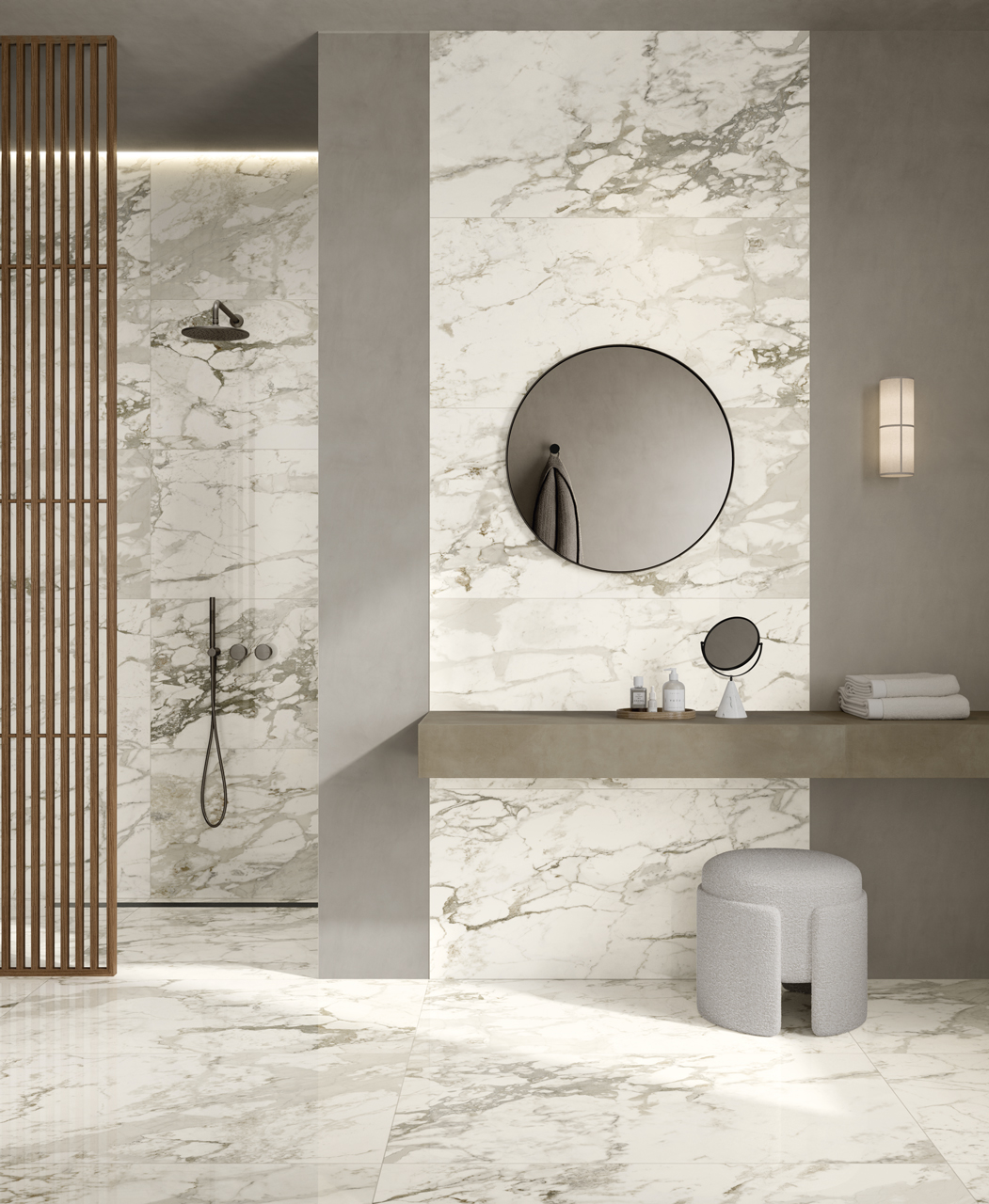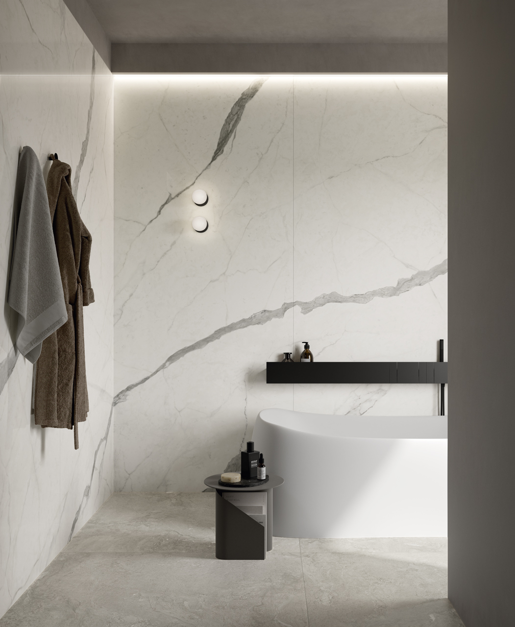 From “total black”, through shades of grey and brown, to all the whites imaginable, the marble in the Infinito 2.0 collection offers different textures, run through with different sized veins that enhance their natural aesthetics and prestige.