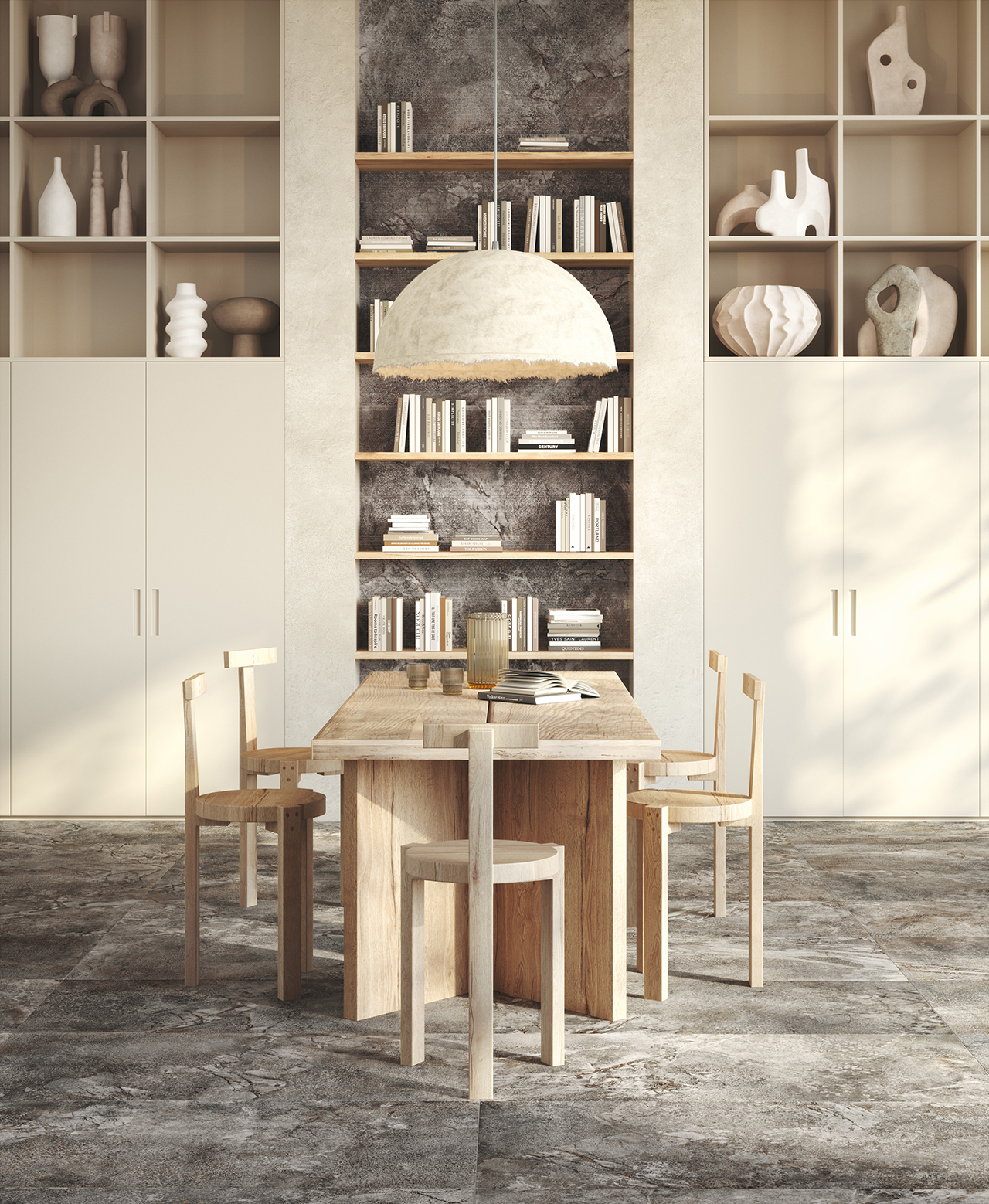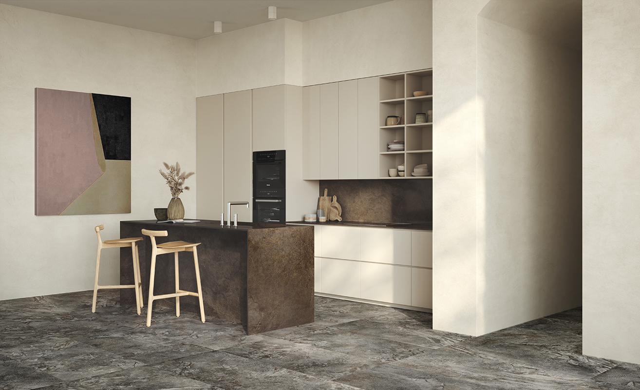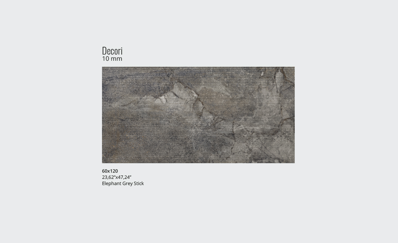 Matt&Deep is an exclusive production technology applied in processing the mixes that form our porcelain stoneware. It makes the surface extremely matt, while enhancing the three-dimensional appearance of graphic motifs and structures. Overlays of selected materials and pigments with very low gloss levels blend deep in the ceramic substrate, providing ever-varying shading effects that make the interpretation of natural materials perfectly real.