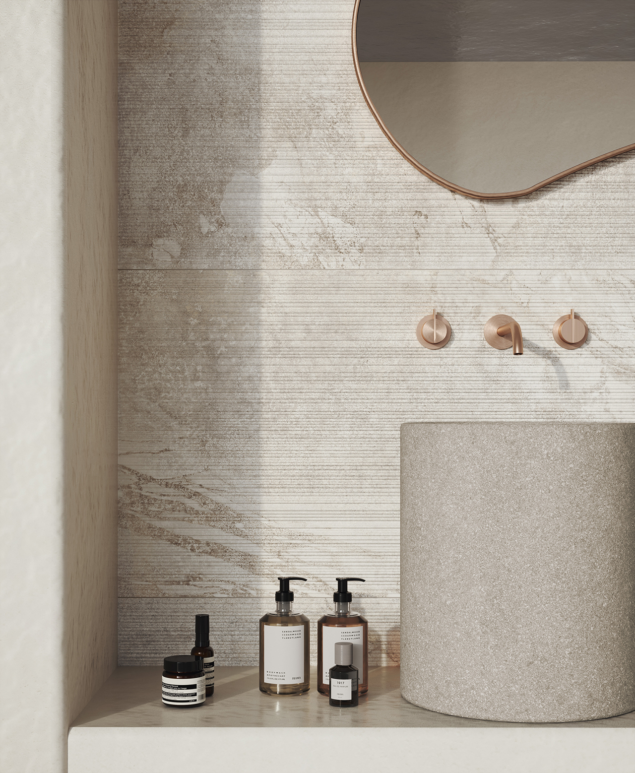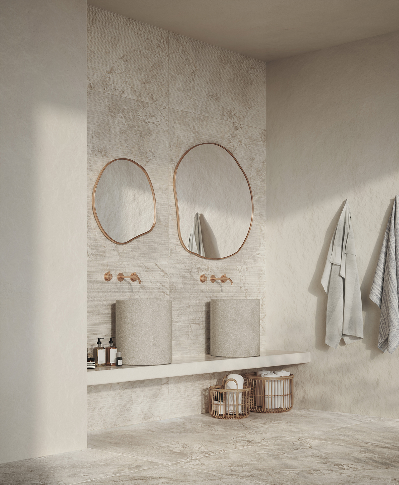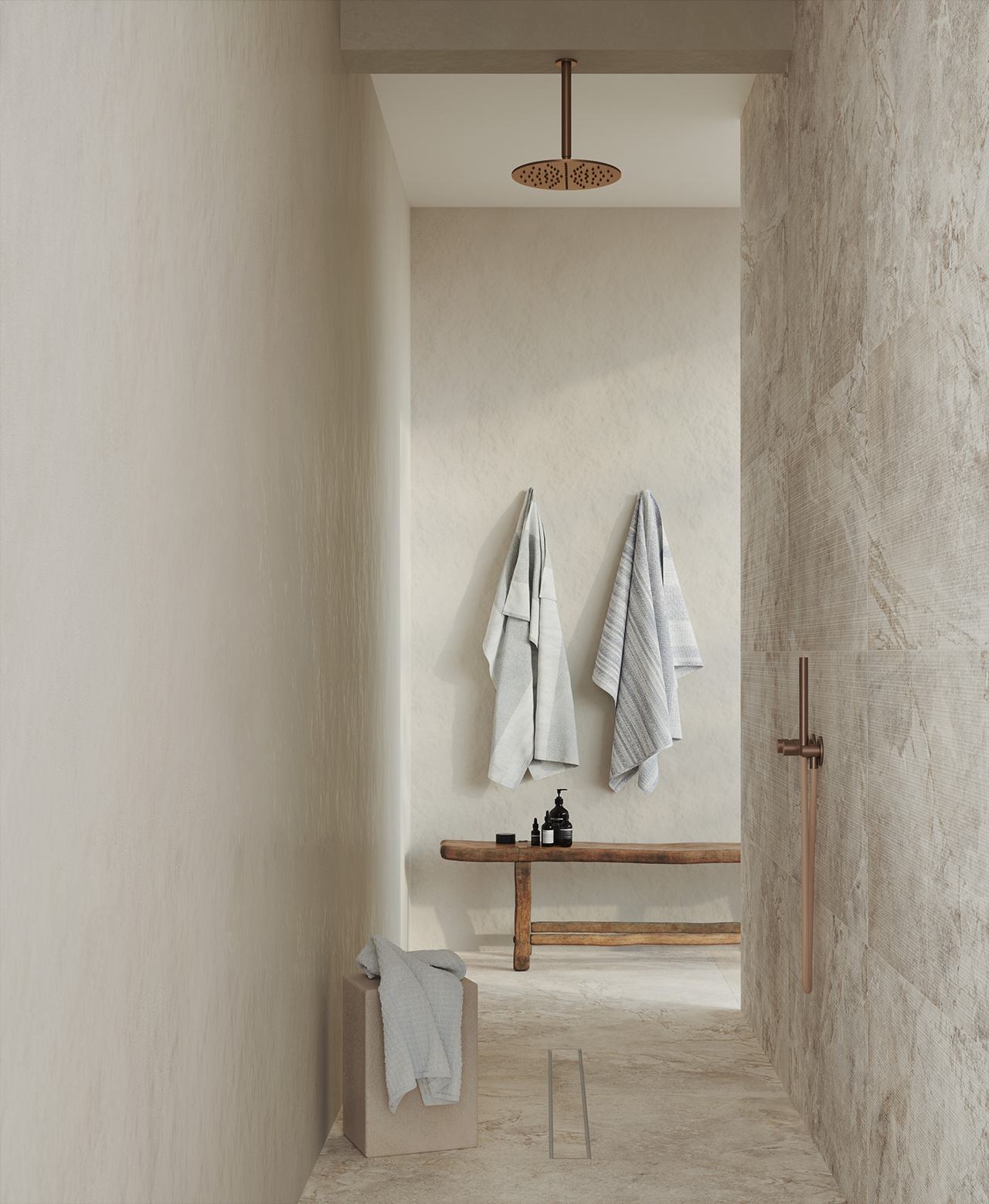 Matt&Deep is an exclusive production technology applied in processing the mixes that form our porcelain stoneware. It makes the surface extremely matt, while enhancing the three-dimensional appearance of graphic motifs and structures. Overlays of selected materials and pigments with very low gloss levels blend deep in the ceramic substrate, providing ever-varying shading effects that make the interpretation of natural materials perfectly real.