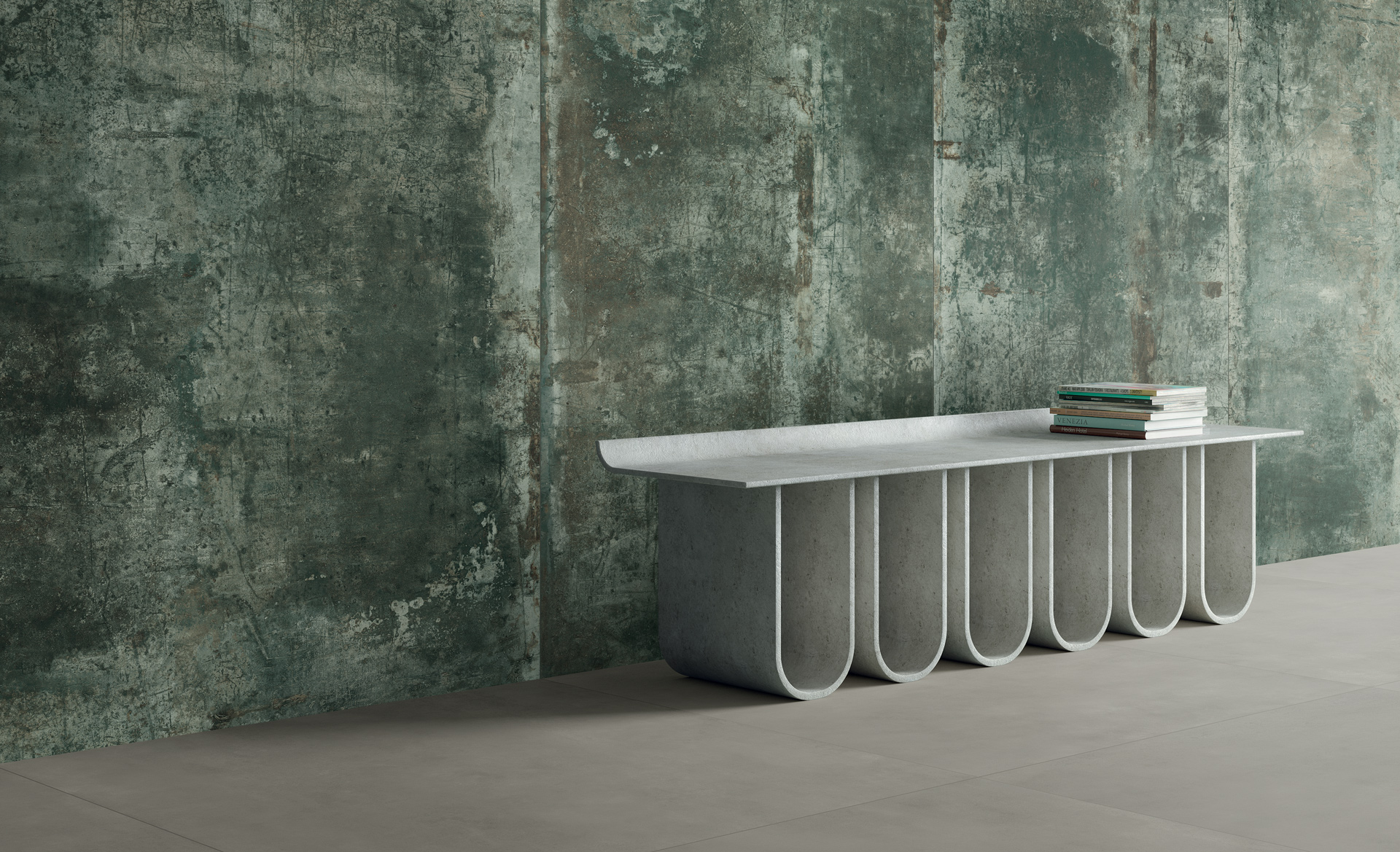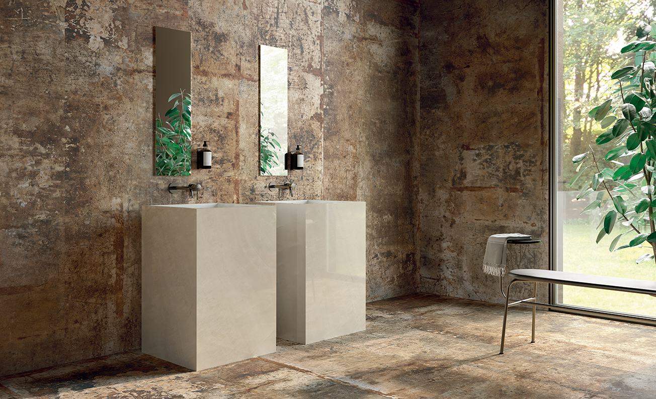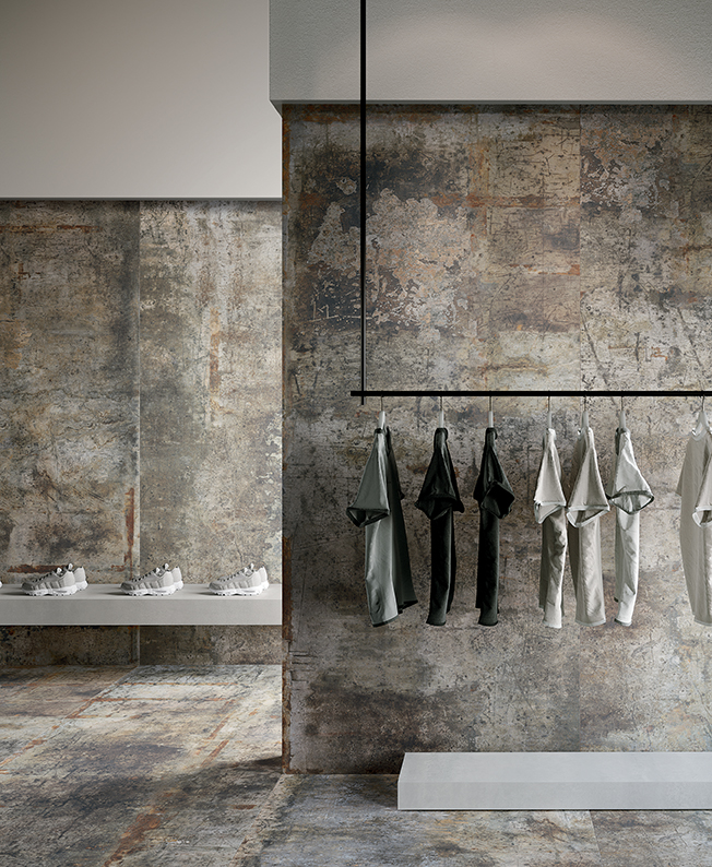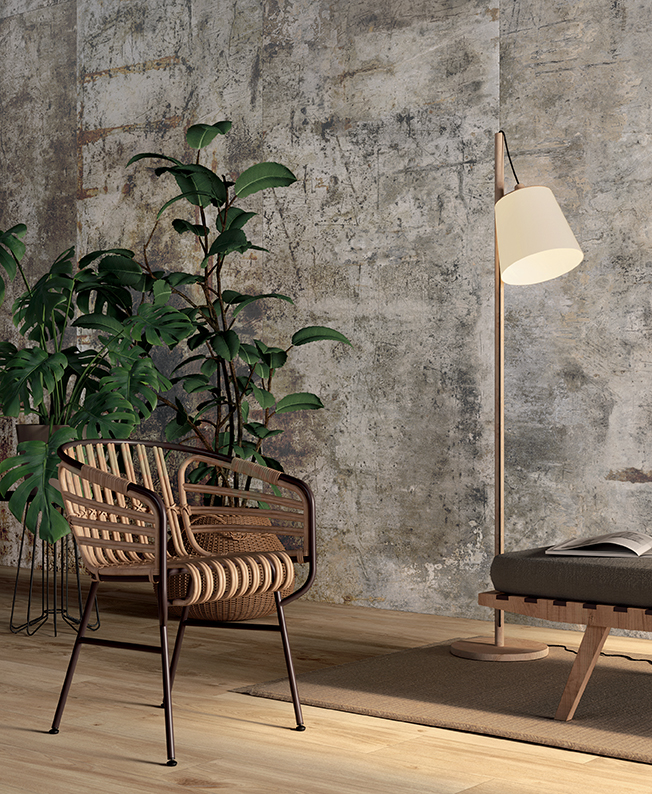 Marks, scratches and imperfections instinctively move across cement-effect surfaces, as if to tell an intricate story that diffuses an aesthetic wealth of creative energy into the environment.